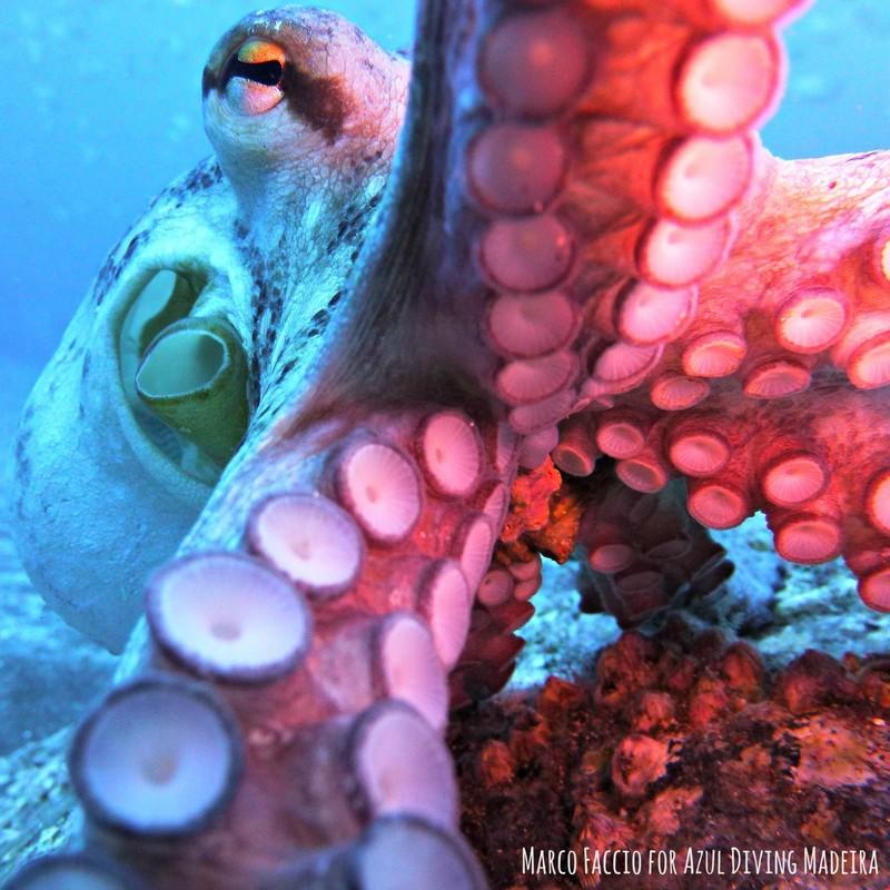 Le immersioni a Madeira. Le acque limpide ed i ricchi fondali marini di Madeira, rinomata per le sue numerose riserve naturali e marine, offrono innumerevoli siti ideali per immersioni affascinanti ed elettrizzanti. La fauna marina di questa regione biogeografica comprende principalmente specie di ambiente costiero. I fondali rocciosi e sabbiosi ospitano numerose specie bentoniche e nectoniche: cernie brune (Epinephelus guaza) e serranidi in genere, salpe, saraghi, triglie, scorfani (Scorpaena scrofa), pesci pappagallo, balestra, murene, polpi, seppie, barracuda, banchi di donzelle sono solo alcune delle specie che possono comunemente essere incontrate dai subacquei. Tra gli invertebrati, oltre a varie specie di anemoni e stelle marine, sottolineiamo la presenza di numerosi “vermocane” (Hermodice carunculata), policheti di dimensioni anche ragguardevoli (fino a 30cm) famosi per le loro setole spiacevolmente urticanti, e diverse specie di granchi, la più curiosa delle quali è sicuramente il granchio freccia (Stenorhynchus seticornis). Non mancano inoltre gli incontri occasionali con organismi di grandi dimensioni, tipicamente di ambiente pelagico: tonni, cetacei (tra cui il delfino maculato e il delfino di Risso), tartarughe, mante e mobule, oltre alla rinomata ma assai rara foca monaca (Monachus monachus).